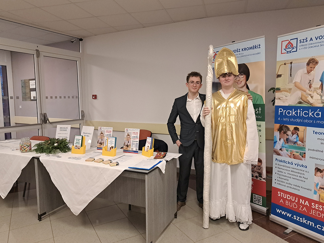 Všem návštěvníkům se letos dostalo milého přijetí od Mikuláše. Komentované prohlídky školy zajistili vyučující spolu se studenty oboru Praktická sestra a Sociální činnosti. Studenti hrdě a srozumitelně prezentovali vše podstatné ze svých oborů. Příjemná atmosféra nás provázela po celé odpoledne. Již zítra se těšíme na další zájemce o studium.