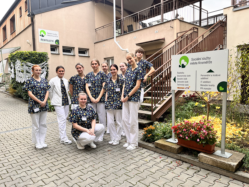 Od září zahájili žáci 3. ročníku oboru Sociální činnost svou učební praxi. Pravidelně docházejí do dvou zařízení sociálních služeb města Kroměříž – Domova pro seniory U Kašny a Domova pro seniory U Moravy. V rámci praxe si procvičují přímou obslužnou péči o klienty, která je důležitou součástí jejich profesní přípravy. Také se učí plánovat a realizovat aktivizační činnosti pro klienty.