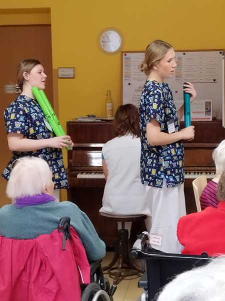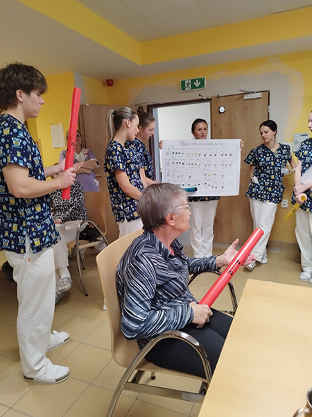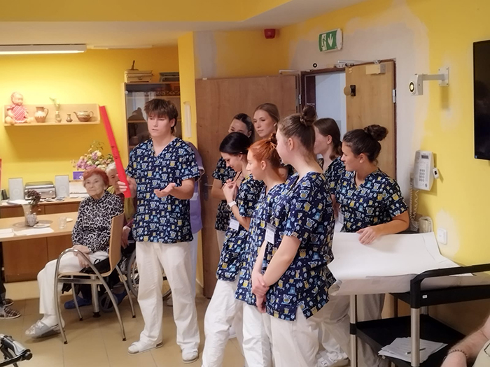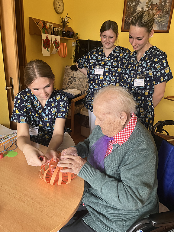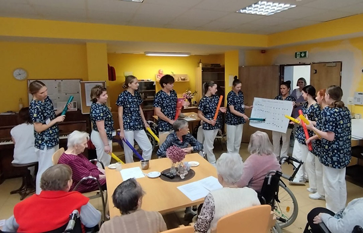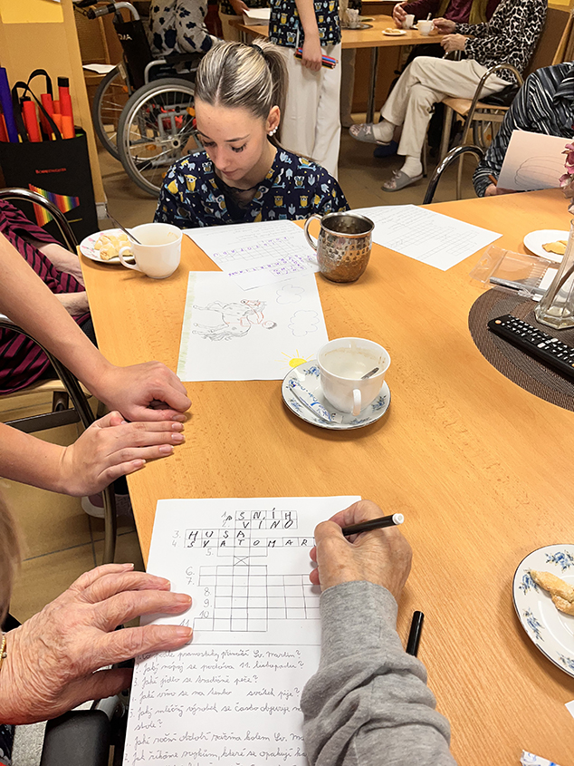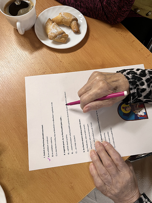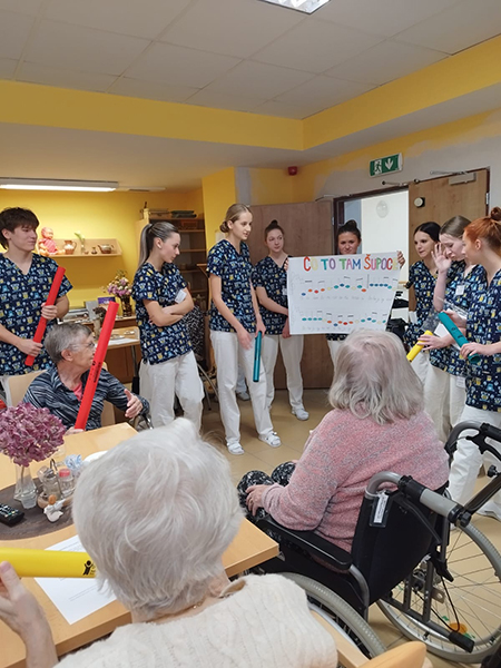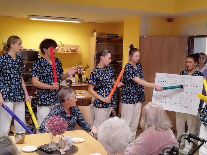 U příležitosti svátku svatého Martina si žáci třídy 3.S připravili pro klienty Domova pro seniory U Kašny tematické aktivizační dopoledne. Klienti si společně se žáky vyzkoušeli různé úkoly a zábavné aktivity, například hádanky, přesmyčky, doplňovačky, puzzle, kreslení atd. Program byl zakončen kulturním vystoupením – žáci klientům zazpívali lidové písně, které nacvičili v rámci předmětu Sociální aktivizace seniorů. Doprovodili je rytmickými hudebními pomůckami boomwhackers, které poté rozdali i klientům. Ti se aktivně, s radostí a nadšením, zapojili a společně si s žáky zazpívali i zahráli.