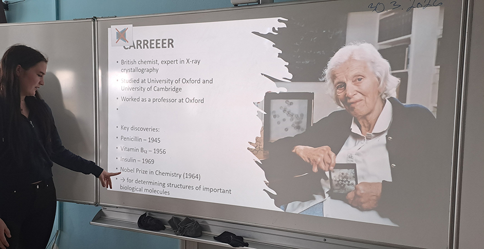 Druhým stěžejním tématem byl Mezinárodní den žen a dívek ve vědě. Žáci druhého ročníku vytvořili zajímavé prezentace, ve kterých představili významné vědkyně 20. století. Zaměřili se na jejich životní příběhy, vědeckou práci i přínos pro společnost. Díky jejich projektům jsme si mohli připomenout, jak důležitou roli ženy ve vědě hrají a jak inspirativní mohou být pro další generace.