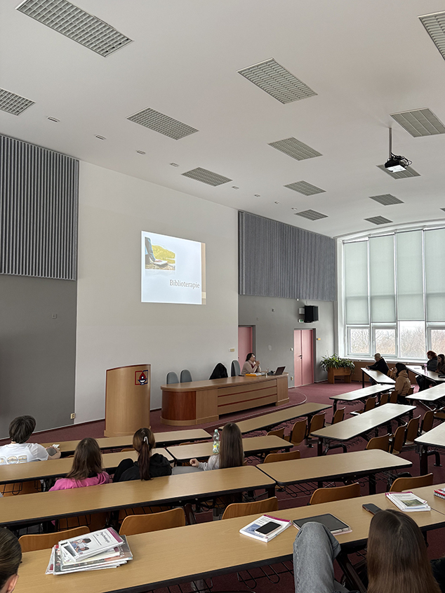 Přednášku vedla paní Marcela Kořínková, která žákům přiblížila tuto úžasnou metodu propojující literaturu s psychologickou pomocí. V úvodní části se zaměřila na teoretická východiska a vysvětlila, co všechno biblioterapie obnáší a jakým způsobem může cílená práce s textem ovlivňovat prožívání a duševní zdraví člověka.