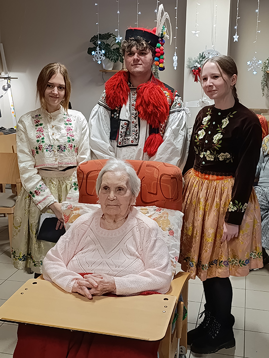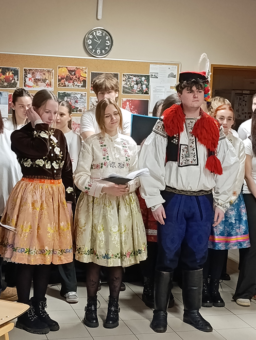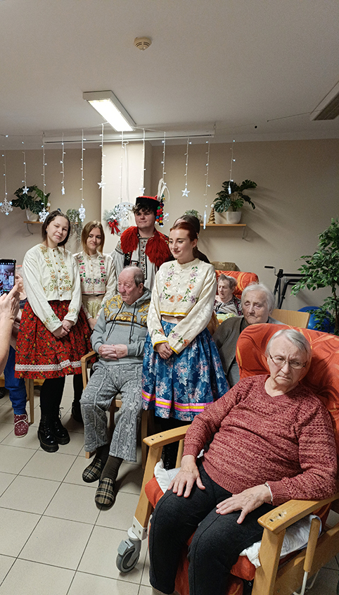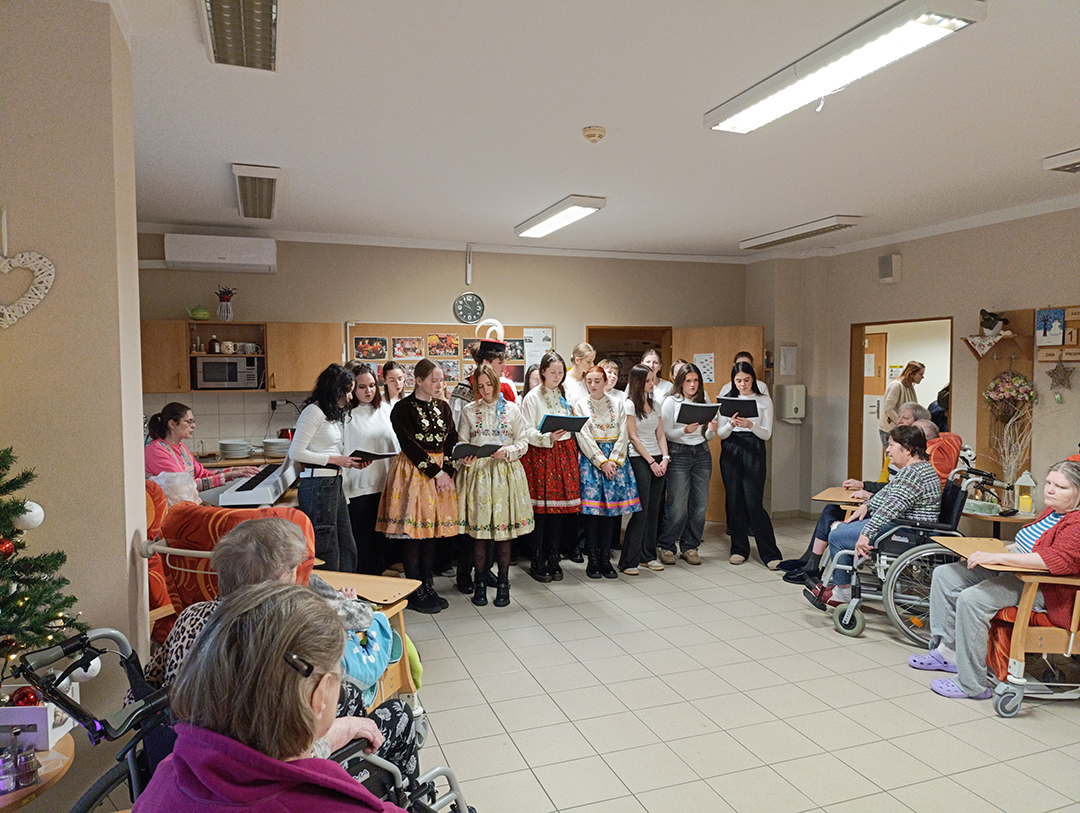 V pátek 12.12. se žáci 3. ročníku vydali rozdávat předvánoční radost seniorům ze Stromu života v Kroměříži. Vánoční koledování a atmosféra byly umocněny kouzlem lidových krojů, v kterých žáci zpívali. Zazpívali spoustu známých koled. Ke zpěvu se přidali i klienti v zařízení. Velmi nás potěšilo, že jsme rozezpívali i ty, kteří jsou velmi málo komunikativní.