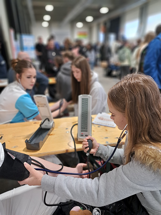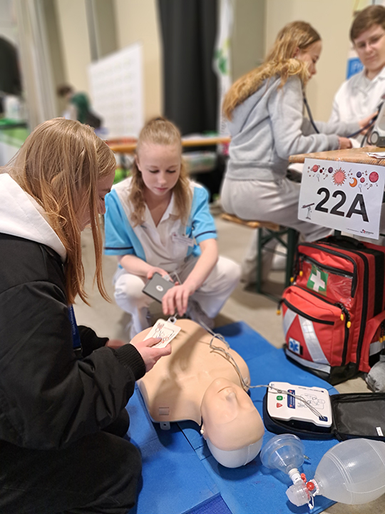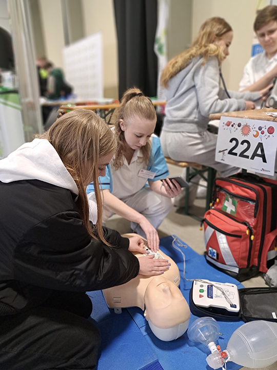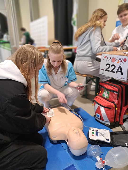 Na našem stanovišti si žáci mohli prakticky vyzkoušet měření krevního tlaku, což u mnohých vzbudilo velký zájem. Velkým lákadlem byla také ukázka kardiopulmonální resuscitace (KPR), při které si děti mohly osvojit základní postupy záchrany života. Další zajímavou aktivitou byla práce s auskultačním modelem, díky němuž si žáci mohli poslechnout a rozpoznat různé srdeční a dechové zvuky.